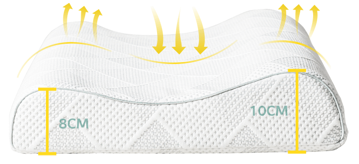 10cm,侧睡时,自然迎合肩部充分填充肩部与颈部空隙从而防止头部压迫肩部让头、颈、肩处于同一水平面更容易进入放松睡眠状态。