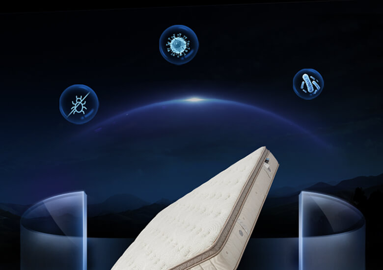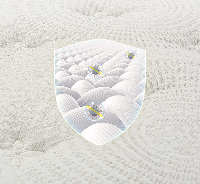 相较于普通床垫单一抑菌方式,这款通过五 重材质组合。由内而外层层抑制细菌及螨虫 滋生,呵护敏感肌和洁净睡眠。